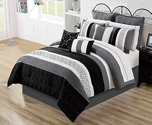 طقم لحاف كامل مكشكش ومطويات 10 قطع من شيك هوم بيج مع طقم ملاءات اسود Twin Amazon Ae