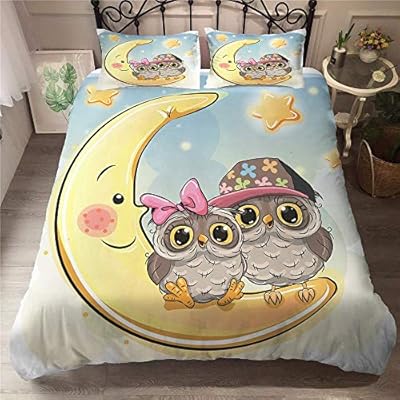 طقم غطاء لحاف ثلاثي الأبعاد البومة غطاء لحاف مع أغطية وسائد لسرير فردي مزدوج من الألياف الدقيقة 3 قطع أولاد بنات طقم لحاف غرفة نوم 135x200cm Amazon Ae