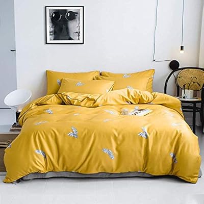 طقم اغطية سرير من الحرير بمقاس كينغ اغطية لحاف اطقم اغطية سرير اطقم اغطية سرير مقاس كينغ حرير كامل حريري 4 قطع طقم اغطية سرير مزدوجة للكبار اصفر King Amazon Ae