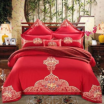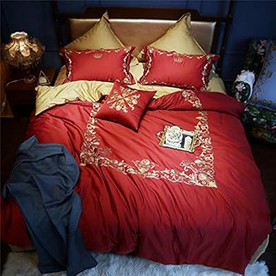 الفاخرة وردة ذهبية التطريز الأوروبية قصر الزفاف الأحمر طقم سرير 100 غطاء لحاف من القطن غطاء سرير الكتان المفرش المخدة مجموعات الفراش Aliexpress