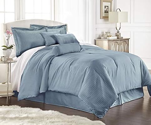 طقم سرير من 7 قطع من Chezmoi Collection Lex Hotel Style Dobby مخطط لحاف للسرير مقاس King لون أزرق اشتري اون لاين بأفضل الاسعار في السعودية سوق كوم الان اصبحت امازون السعودية