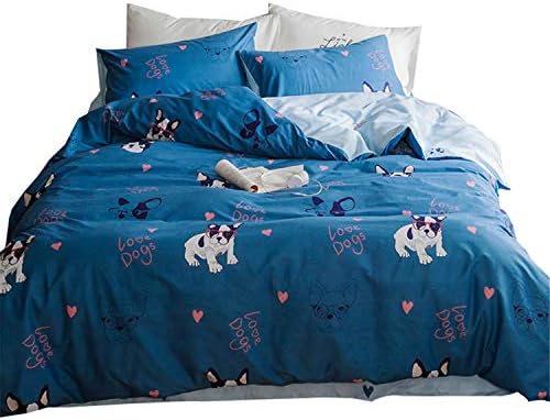 طقم غطاء لحاف لطيف من Otob عليه صورة كارتون جرو كلب كامل ملكة جميلة للأولاد أزرق 100 قطن خفيف الوزن مريح 3 قطع أطفال بنات غطاء لحاف مع أغطية وسائد سحاب أطقم
