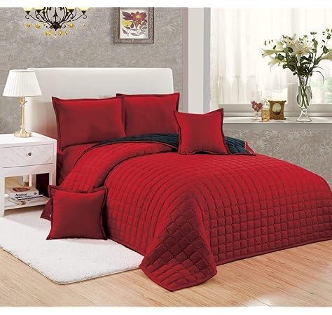 طقم لحاف وشام من بريل توأم رمادي احمر King Amazon Ae