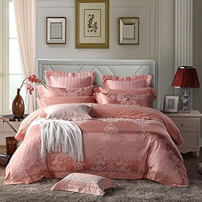 طقم لحاف 4 قطع من الساتان الحريري الناعم جاكار لحاف قطن فائق النعومة حجم كوين غطاء سرير زهري 200 230cm Amazon Ae