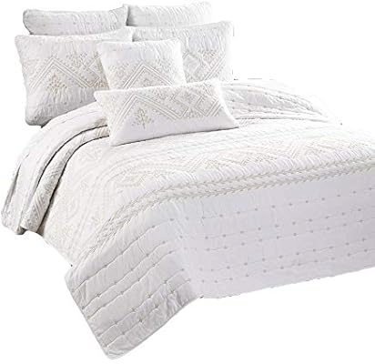 طقم لحاف 3 قطع نوفا رافل من لاش ديكور كامل كوين أبيض King Amazon Ae