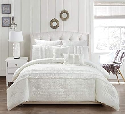 طقم لحاف مكشكش 3 قطع من Great Bay Home مع أغطية وسائد مجموعة لحاف Channel Stitch Full Queen مجموعة لحاف مفرش سرير لجميع المواسم مجموعة أزاليا كامل كوين أبيض اشتري اون لاين