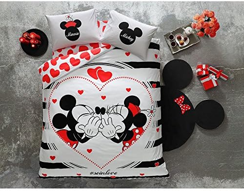 طقم لحاف لحاف 100 قطن 4 قطع مرخص بمقاس مزدوج كوين ديزني ميني وميكي عيد الحب Amazon Ae