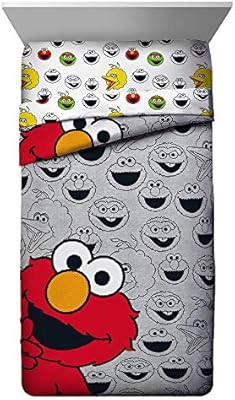 طقم لحاف أطفال من Jay Franco Sesame Street Elmo Hip Twin سرير أطفال ناعم جد ا ذو وجهين يتميز بشخصيات شارع السمسم حشوة من الألياف الدقيقة البوليستر المقاوم للبهتان منتج رسمي